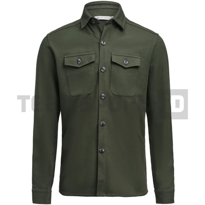 Moderna overshirt in tessuto strutturato a nido d’ape in cotone organico e poliestere riciclato.