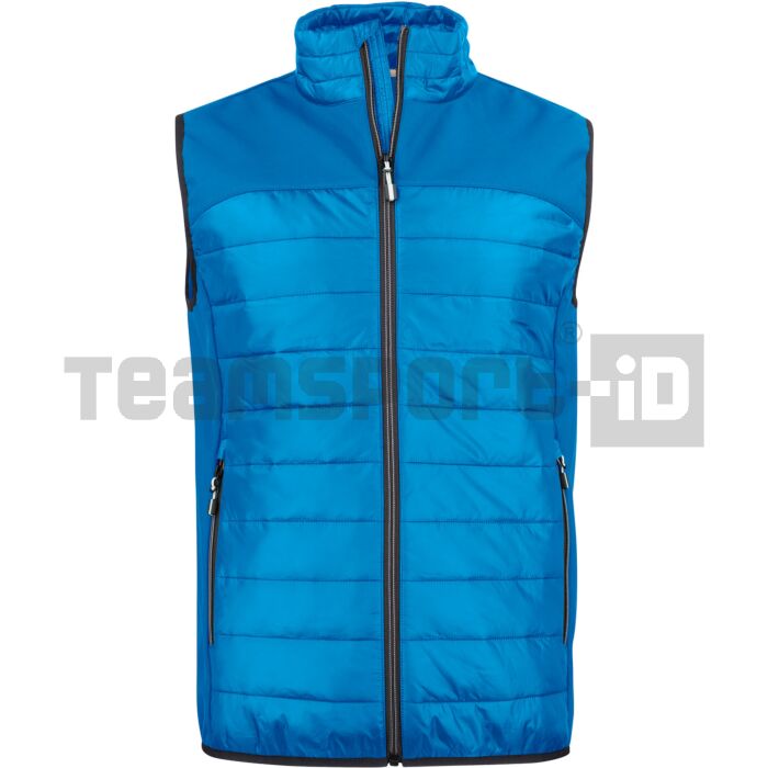 Smanicato leggero. Carrè e pannelli laterali in softshell. Fronte e retro in piumino ultra leggero. Tasche con zip e bordini elasticizzati a contrasto.